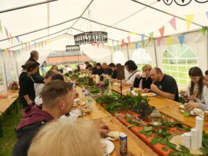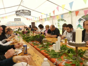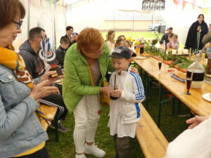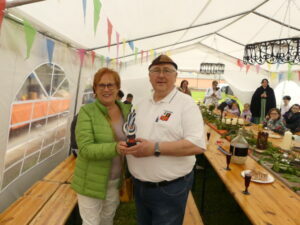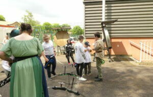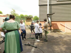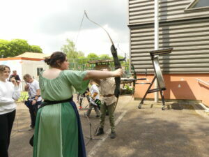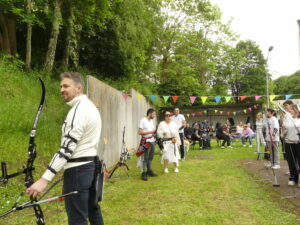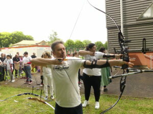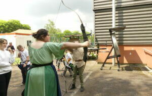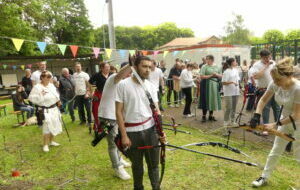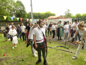 Ce dimanche 19 mai à eu lieu le traditionnel Tir à l’Oiseau chez les Robins Stiringeois. Cette année, cette manifestation a pris l’allure d’une fête médiévale, les abords des pas de tir et du chapiteau étaient décorés de moult fanions de toutes couleurs et de nombreux blasons. Parmi les archers l’on a pu apercevoir preux chevaliers et gentes fées. La tente, sous laquelle les Roys et Reynes de l’année précédente accueillaient les prétendants de cette année ainsi que leurs familles autour d’une grande tablée, était également superbement décorée par Dame Elisabeth, Dame Claire et leurs aidants. Après avoir fait ripaille, les Robins se sont dirigés vers le pas de tir. À l’issue des tirs sous une météo capricieuse, ont été sacrés Roy ou Reyne par les représentantes de la municipalité, Mesdames Haag et Sotgiu: Catégorie Poussins : Noah Catégorie Jeunes : Léon Catégorie Ados : Morgane Catégorie Adultes débutants : Claire O. Catégorie Adultes confirmés: Roland K. C’est autour d’un pot de l’amitié avec canapés et petits fours que cette belle journée s’est terminée.